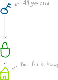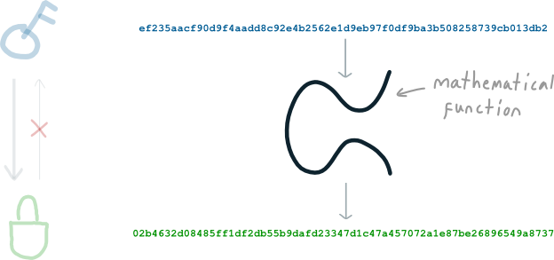 ما فقط کلید خصوصی (که نهایت، یه عدده) رو میدیم به اون تابع ریاضی، و در آخر تابع به ما یه کلید عمومی (که اونم یه عدد دیگهست) میده.
