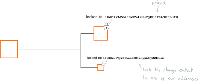 نتیجه اینه که این خروجی جدید در عمل فقط به دوستمون «تعلق» داره، چون تنها کسیه که کلید خصوصی این آدرس رو داره پس هیچ کس دیگهای نمیتونه خروجی رو خرج کنه.