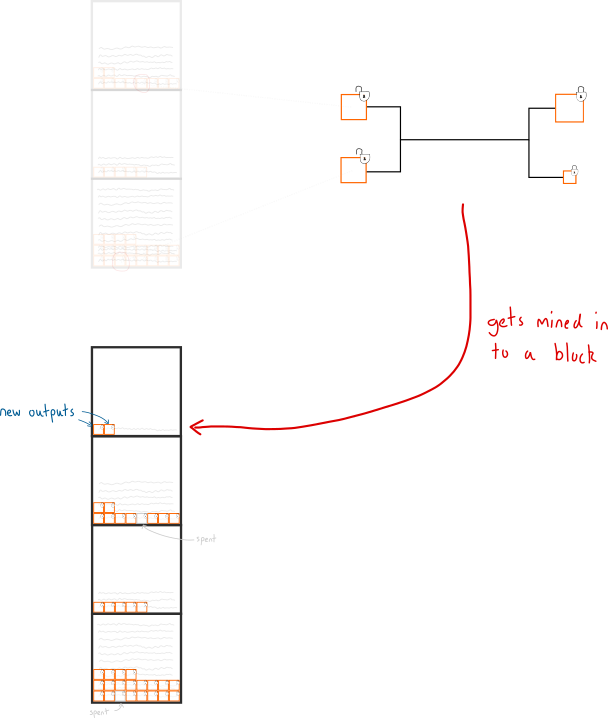 همونطور که میدونیم، یه تراکنش فرآیند برداشتن خروجیهای موجود و ساخت خروجیهای جدید از اونهاست: