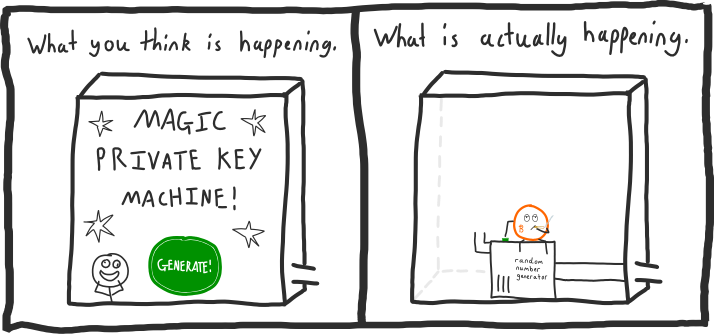 همه‌ی این روش‌ها بهت یه عدد تصادفی ۲۵۶بیتی می‌دن. و اگه یه عدد ۲۵۶بیتی داشته باشی، یه کلید خصوصی داری.